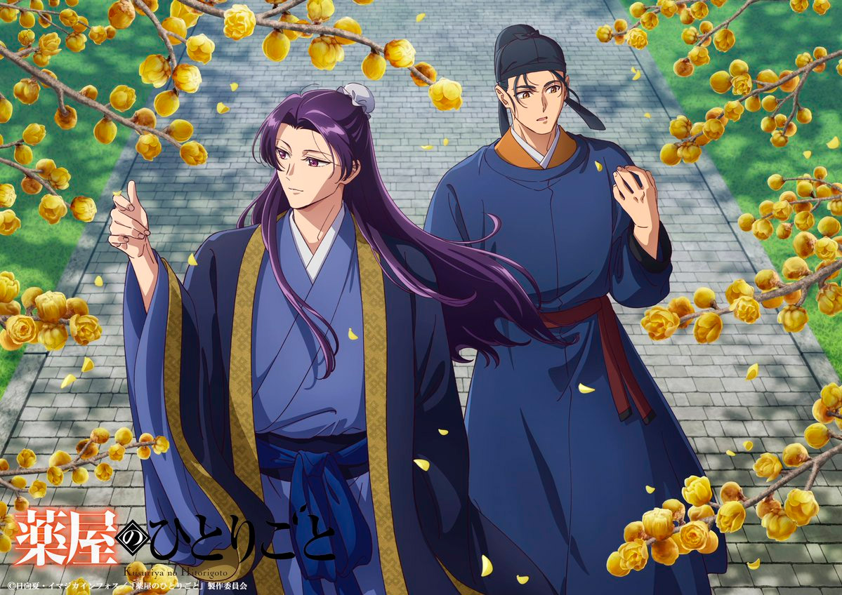El anime The Apothecary Diaries ha revelado su visual especial de febrero, continuando con la tradición de lanzar ilustraciones temáticas el día 22 de cada mes, conocido como Nekoneko Day. En esta ocasión, la imagen presenta a Jinshi y Basen caminando por un sendero rodeado de flores amarillas, evocando un ambiente cálido en pleno invierno.