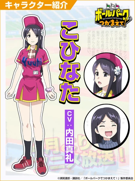 La adaptación al anime del manga The Catcher in the Ballpark! (Ballpark de Tsukamaete!) de Tatsurō Suga ha revelado una nueva adición a su elenco. Maaya Uchida interpretará a Kohinata, una vendedora de cerveza con 10 años de experiencia en el estadio de los Motorsuns.