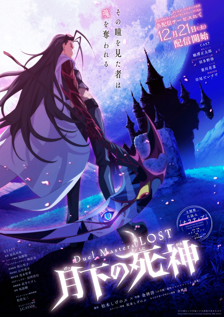 El anime Duel Masters LOST Gekka no Shinigami se estrenó en el canal oficial de la franquicia, «DuelTube», en YouTube el 21 de diciembre de 2024, transmitiéndose en diversas plataformas digitales. Su historia sirvió como continuación del anime web Duel Masters LOST Tsuioku no Suishō (Duel Masters LOST: Crystal of Remembrance), el cual debutó en YouTube el 4 de octubre de 2024.