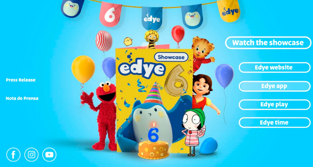 - Edye, la plataforma premium de contenido para niños en edad preescolar, celebra sus primeros 6 años ofreciendo la programación infantil de mayor calidad y alcanzando 14 millones de suscriptores en los Estados Unidos y América Latina.