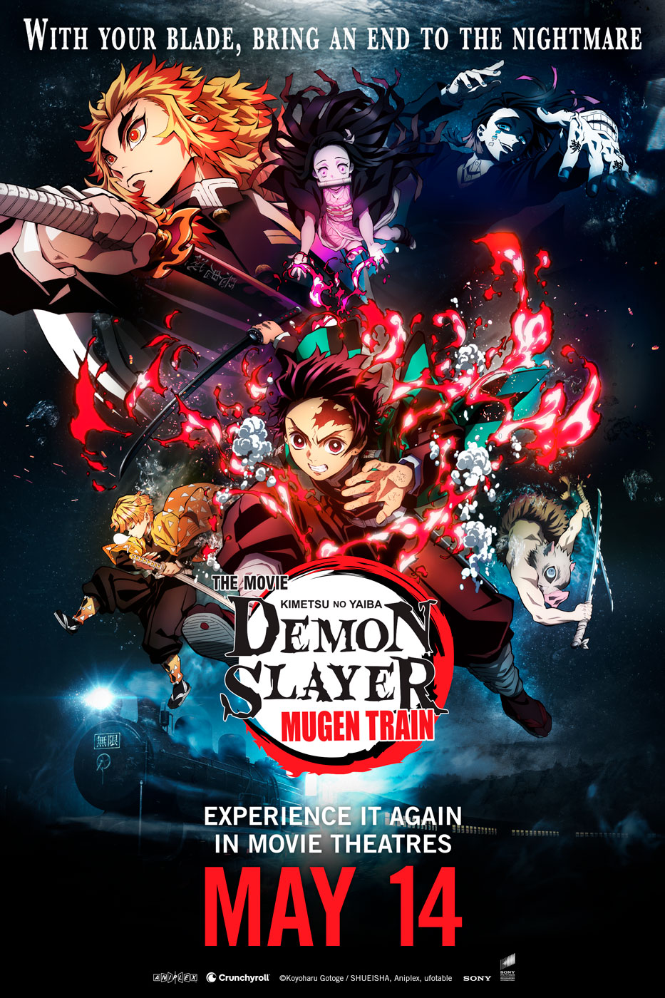 Los Angeles, California (21 de abril 2025) – Aniplex of America y Crunchyroll, el hogar definitivo para el anime en todo el mundo, anunciaron hoy que la sensación del anime Demon Slayer -Kimetsu no Yaiba- The Movie: Mugen Train volverá a los cines, debutando en 4K, en Estados Unidos, Canadá, cines selectos de Puerto Rico, así como en algunos territorios internacionales a partir del 14 de mayo de 2025. Distribuida por Crunchyroll y Sony Pictures Entertainment en Norteamérica, la película, estrenada originalmente en 2020, se mostrará tanto en japonés con subtítulos en inglés como doblada al inglés. Las entradas para el relanzamiento de Demon Slayer -Kimetsu no Yaiba- The Movie: Mugen Train saldrán a la venta el miércoles 30 de abril (consulta tu programación local).