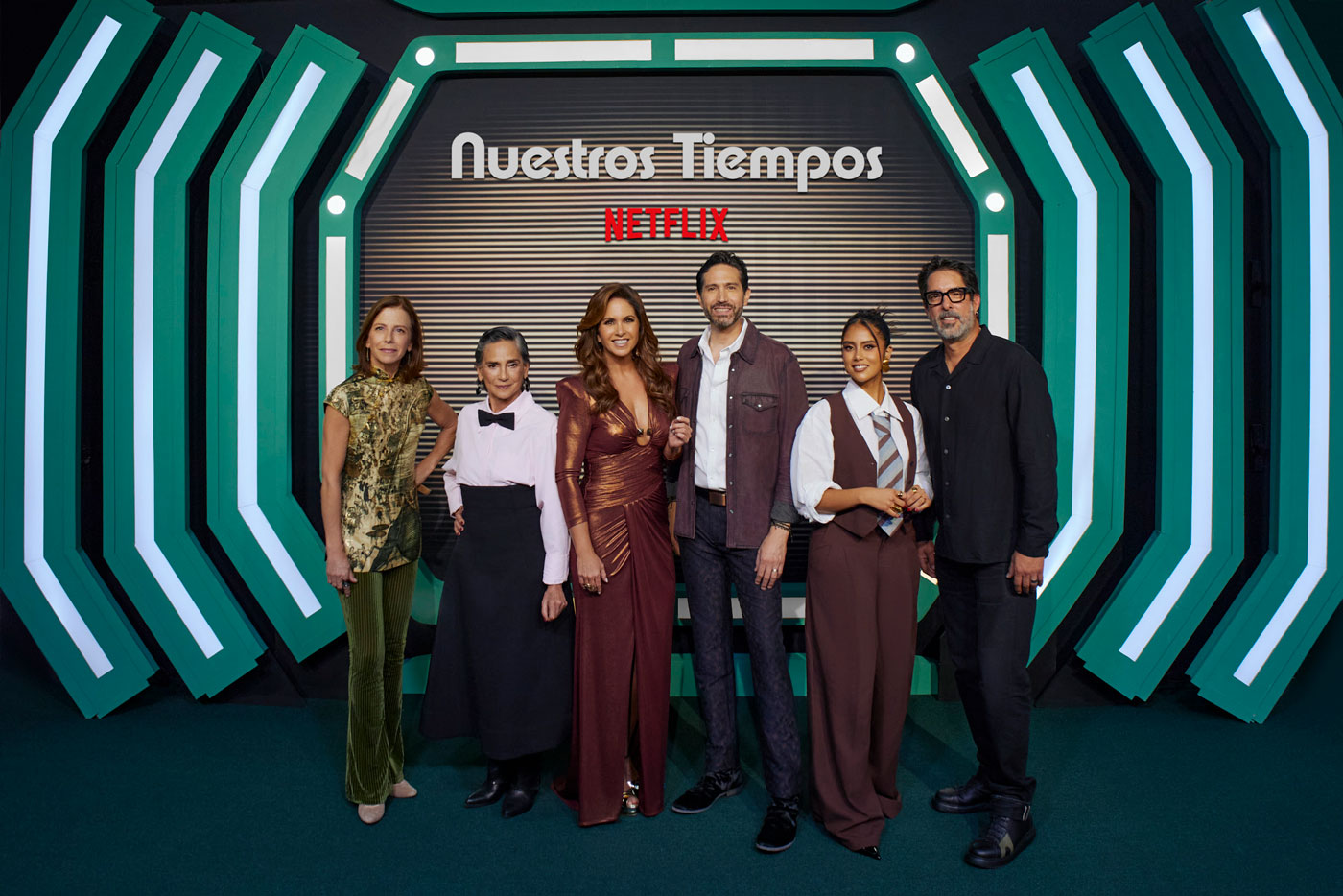 Para celebrar el estreno de Nuestros Tiempos, que llegará a Netflix este 11 de junio, esta noche se llevó a cabo su premiere y alfombra roja en Plaza Carso, en la Ciudad de México. El evento contó con la presencia del elenco principal y parte del equipo creativo de la cinta: Lucero, en su esperado regreso a una película, Benny Ibarra, Ofelia Medina, Renata Vaca, Claudia Lobo y el director Chava Cartas.
