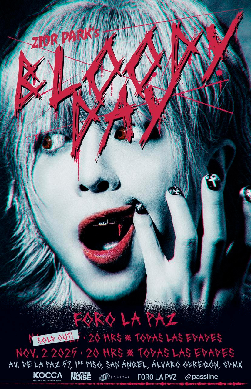 BLOODY DAY invita a los fans a una experiencia catártica, teatral e inmersiva: una noche que fusiona sonido, espectáculo y emoción pura. El concierto incluirá temas destacados de A BLOODSUCKER, incluyendo el tema principal «TWISTED FANTASY», junto con otras actuaciones llenas de energía. Zior Park, conocido por combinar la estética del rock clásico con narrativa cinematográfica y un audaz tema inspirado en vampiros, se ha convertido rápidamente en una de las voces más cautivadoras de la escena musical alternativa de Corea del Sur. Tras el éxito viral de «CHRISTIAN» en 2023 y su primera presentación con entradas agotadas en México en 2024, continúa estrechando lazos con su creciente base de fans latinoamericana.
