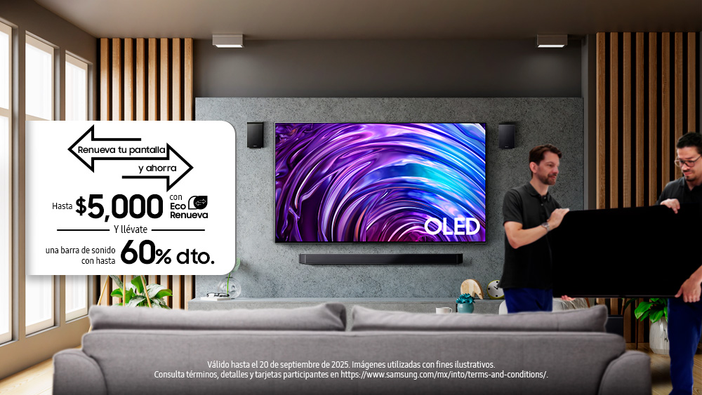 Con el objetivo de facilitar la actualización de equipos y fomentar prácticas responsables de renovación tecnológica, Samsung lanza en México su nueva campaña de EcoRenueva. A través de esta iniciativa, los usuarios pueden entregar su pantalla actual, ya sea Samsung o de cualquier otra marca, y así ahorrar hasta $5,000 pesos en la compra de una nueva pantalla OLED.