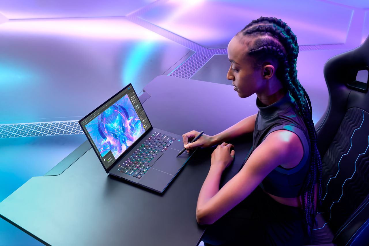 Los usuarios pueden elegir entre una pantalla AMOLED de 16 pulgadas WQXGA+ con frecuencia de actualización de 120 Hz, o una pantalla IPS WUXGA con 60 Hz, ambas con relación de aspecto 16:10 para mayor amplitud de visualización y área de trabajo. La opción AMOLED ofrece negros profundos, colores intensos y claridad excepcional, con soporte total para la gama de color DCI-P3 y brillo máximo de 400 nits, ideal para diseñadores y freelancers.