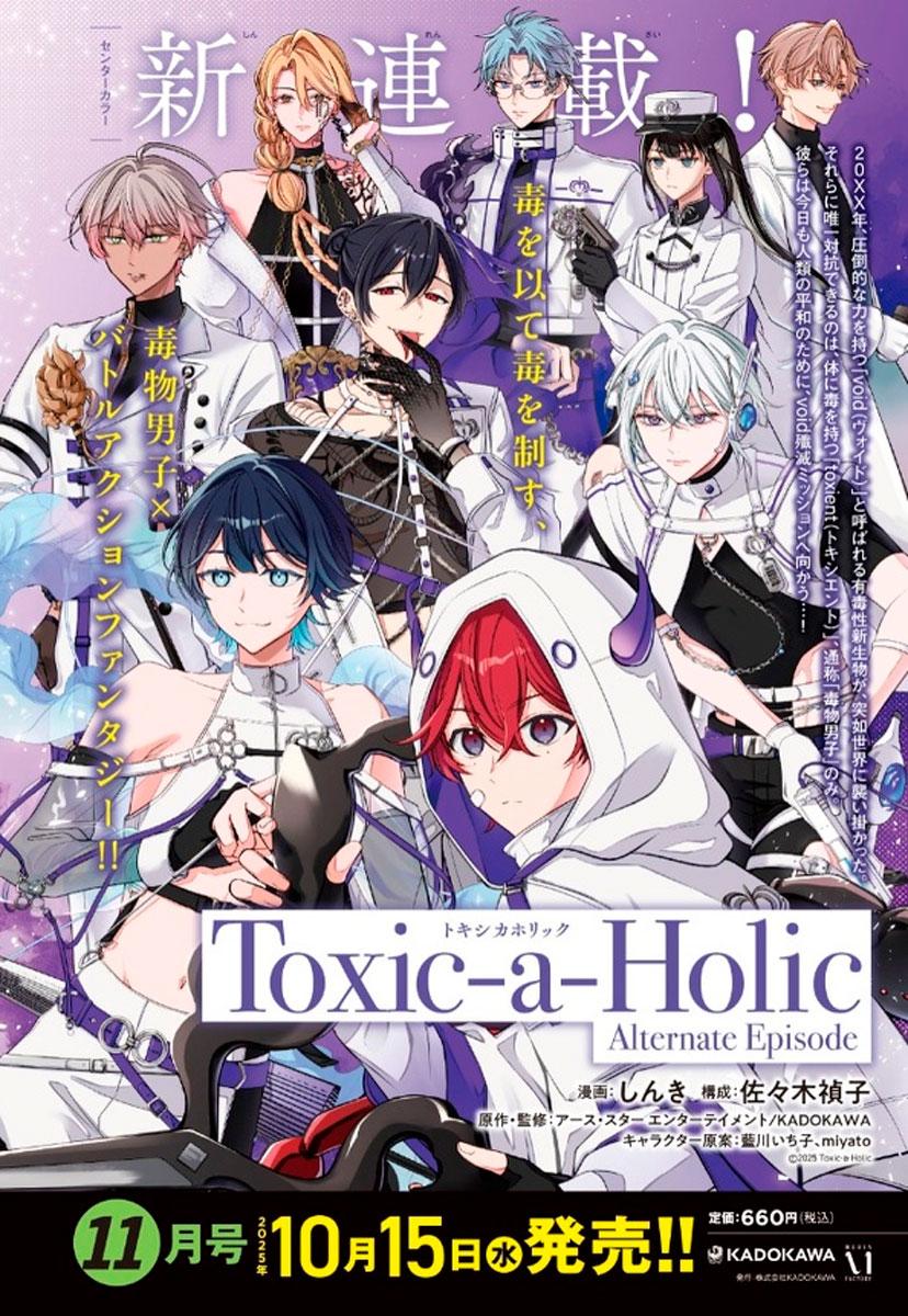 Toxic-a-Holic fue lanzada originalmente en noviembre de 2024 como una colaboración entre Kadokawa y Earth Star Entertainment. Desde entonces, ha ganado atención por su intrigante concepto, su worldbuilding y su atractivo cast masculino. Con este nuevo manga, el proyecto busca llegar a un público aún más amplio, tanto en Japón como a nivel internacional.