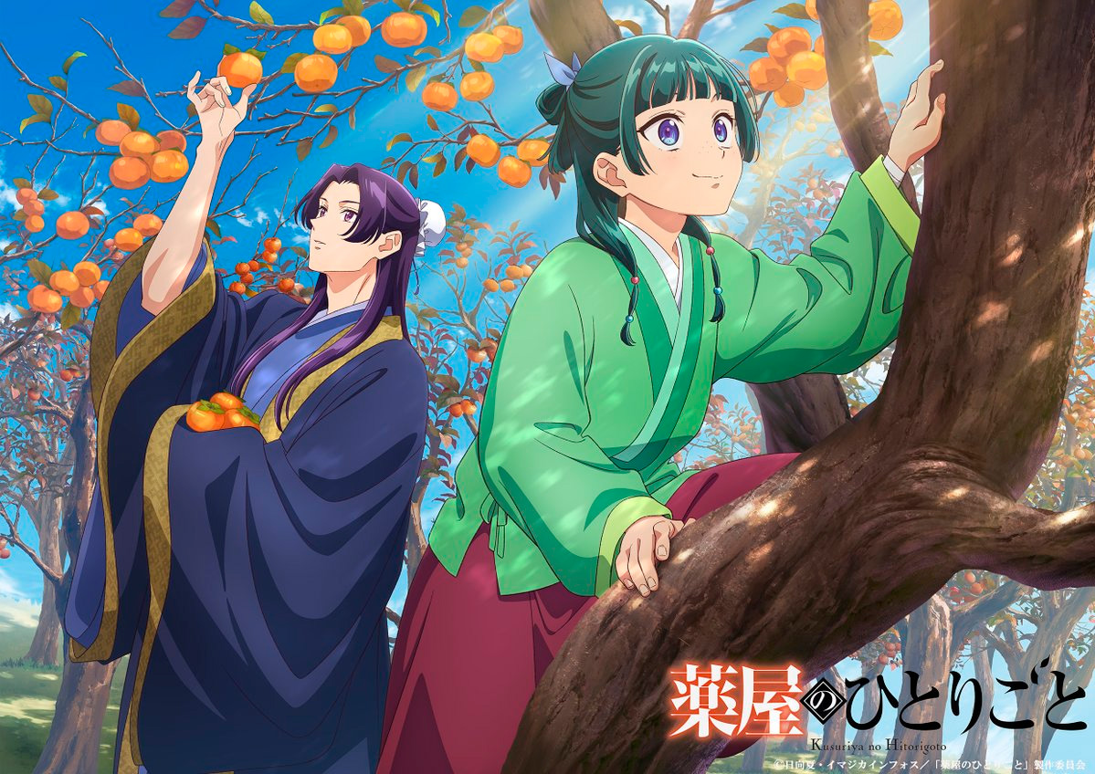 El anime The Apothecary Diaries estrenó una nueva imagen estacional, esta vez dedicada al otoño, mostrando a Maomao y Jinshi recolectando caquis (kaki persimmons). Esta ilustración forma parte de la serie mensual de artes promocionales que destacan a los personajes en distintas estaciones del año, acercando aún más a los fans al mundo histórico y lleno de intrigas de la obra.