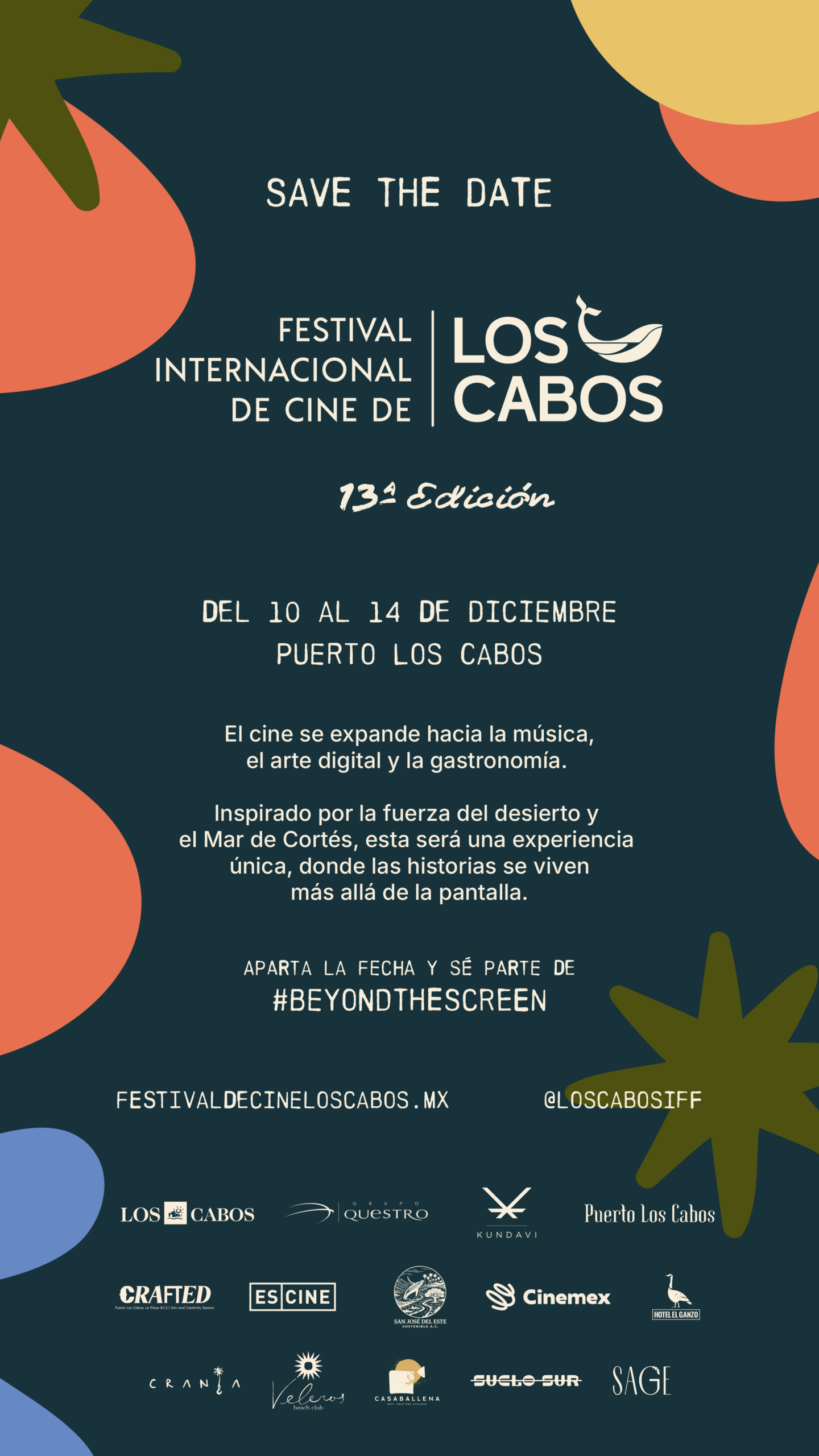 Del 10 al 14 de diciembre regresa uno de los eventos cinematográficos más innovadores y propositivos de México: el Festival Internacional de Cine de Los Cabos celebrará su 13ª edición, consolidando su visión #BeyondTheScreen con una propuesta que va mucho más allá de la pantalla grande.