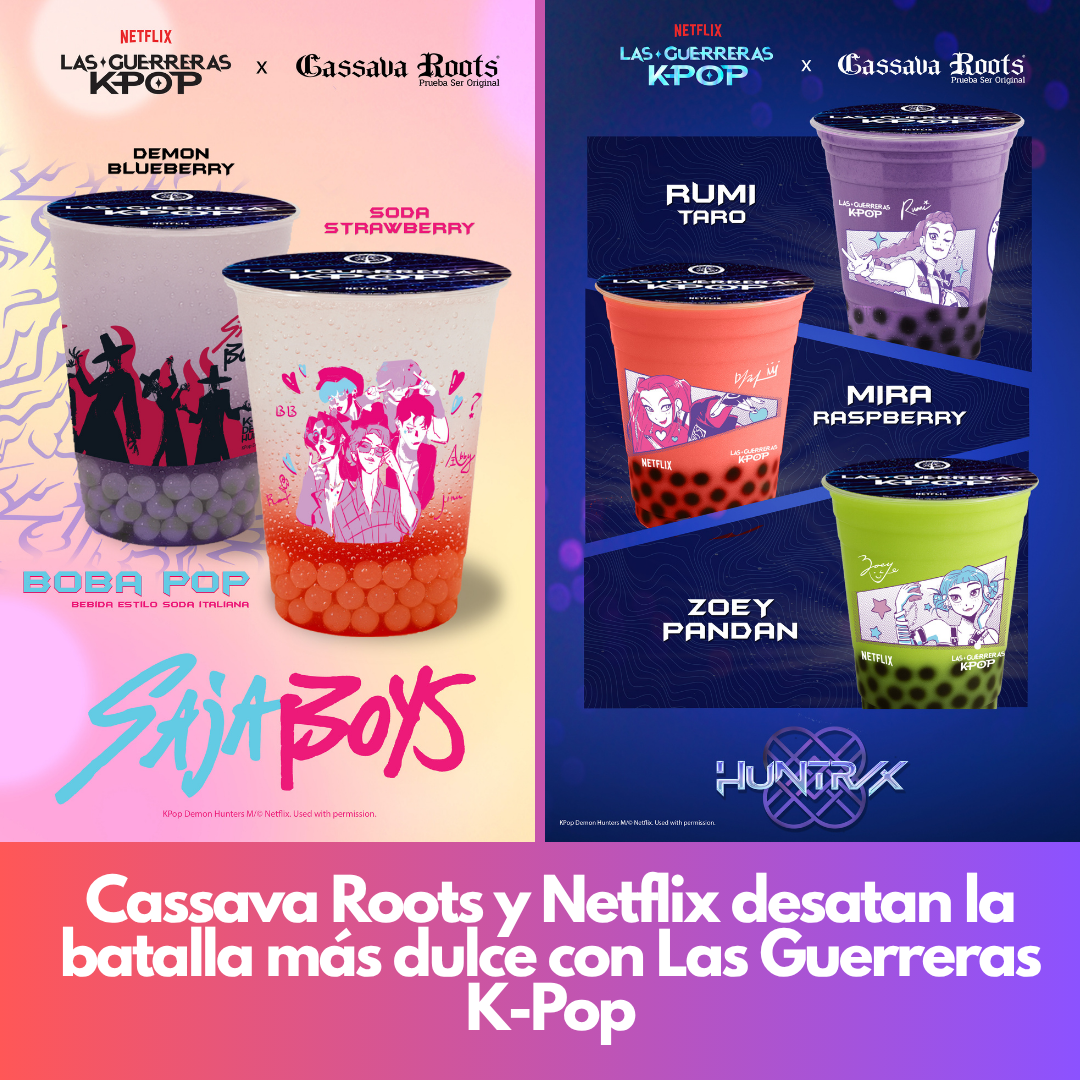Cassava Roots, la marca mexicana pionera del bubble tea, se une a Netflix en una colaboración explosiva que combina música, poder femenino y fantasía sobrenatural. Inspirada en la nueva producción “Las Guerreras K-Pop”, esta alianza transforma cada bebida en una experiencia inmersiva donde el sabor se convierte en un campo de batalla y cada sorbo refleja la energía de sus protagonistas.