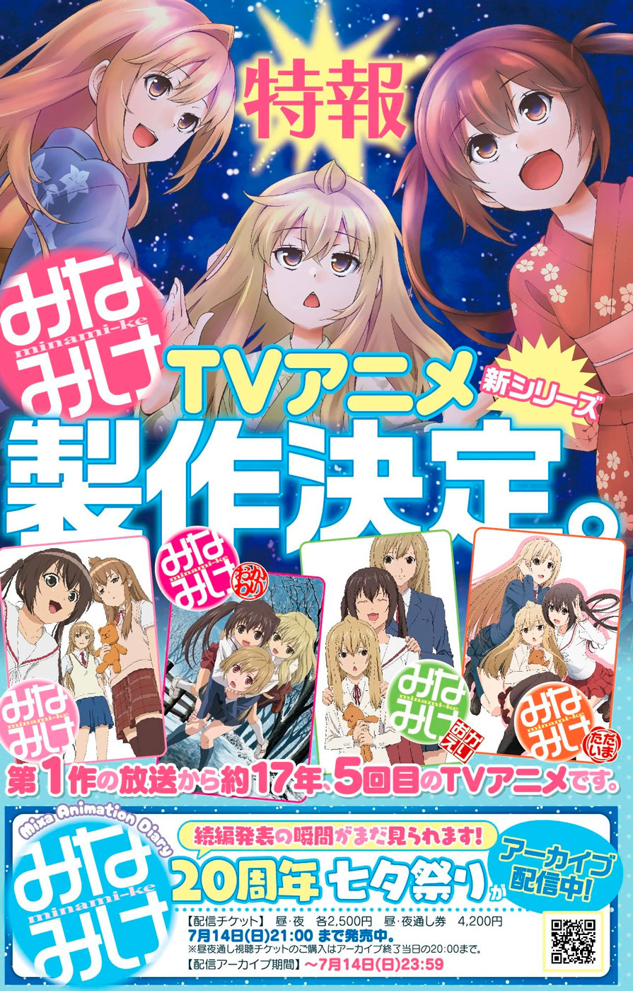 El manga de Minami-ke comenzó a publicarse en 2004 en la revista Weekly Young Magazine de Kodansha, y recientemente celebró su 20.º aniversario. La historia sigue el día a día de las tres hermanas Minami: