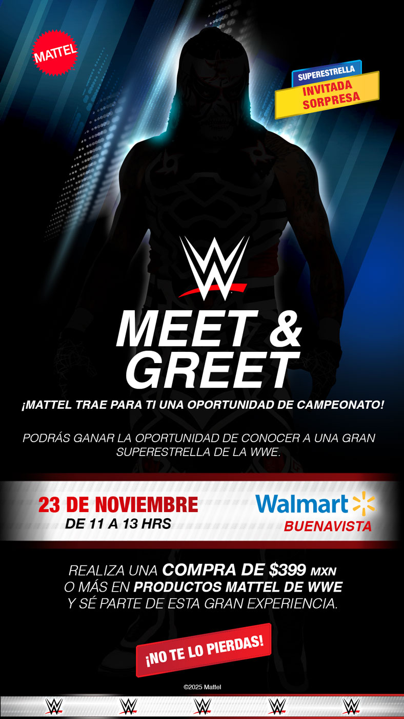 Este domingo 23 de noviembre, Mattel y WWE traerán a Penta a la Ciudad de México para una experiencia que ningún fan querrá perderse. De 11:00 a 13:00 horas, los asistentes podrán obtener una fotografía y/o autógrafo con la superestrella de WWE al realizar una compra mínima de $399 MXN en productos WWE de Mattel dentro de la sucursal Walmart Supercenter Buenavista.