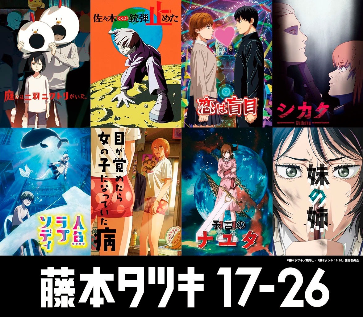 Esta antología fílmica de anime reúne ocho one-shots legendarios, los cuales han sido adaptados al formato animado por seis estudios distintos y bajo la dirección de siete creativos de la industria. La diversidad estética, de género y tono hace de Tatsuki Fujimoto 17-26 un proyecto sin precedentes.