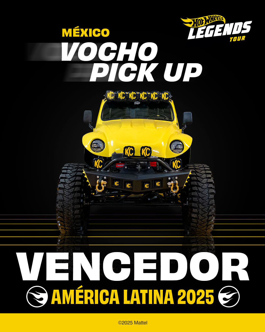 Con esta victoria, el Vocho Pickup de Payán, da un paso más hacia la gloria en el Garage de las Leyendas, donde solo los vehículos más emblemáticos logran convertirse en modelos oficiales Hot Wheels.