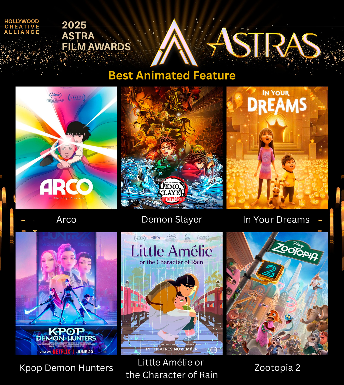 Los nominados en la categoría Best Animated Feature en los Astra Film Awards 2025 son: