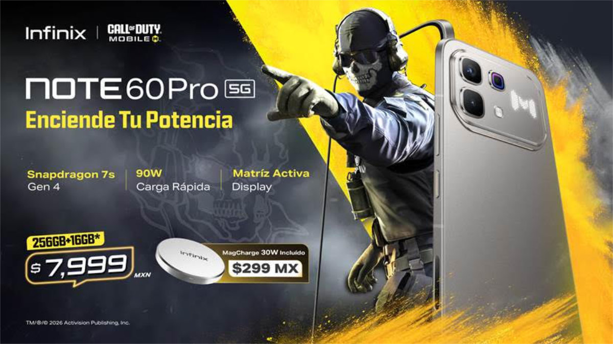 Ciudad de México, 13 de abril de 2026.- Infinix lanza hoy la Serie NOTE 60 en México, integrada por los modelos NOTE 60 5G y NOTE 60 Pro 5G, Call of Duty: Mobile Edition, con lo que la compañía marca un nuevo capítulo en la entrega de experiencias tecnológicas premium para usuarios en el país.
